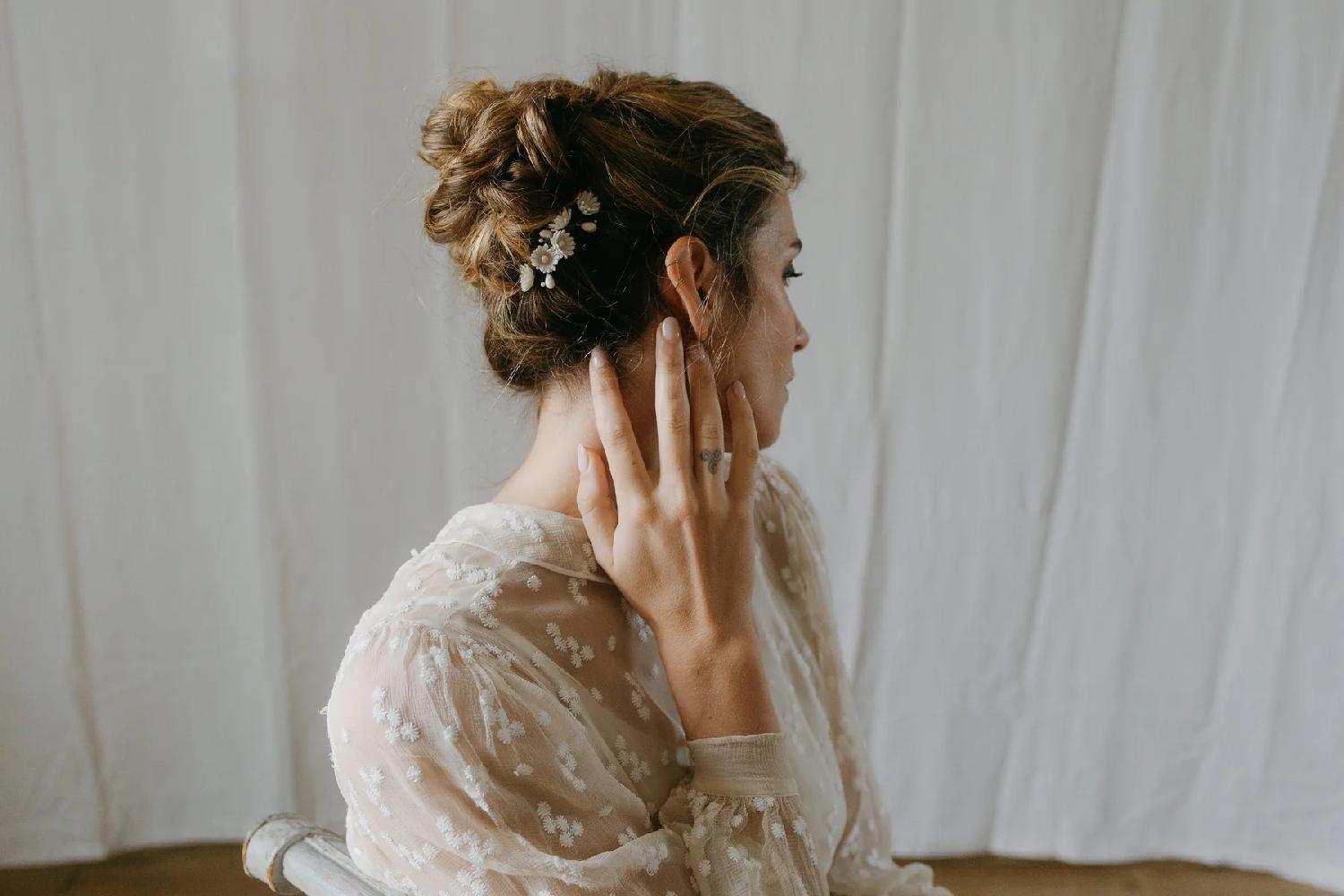 Le peigne de mariage  Ninon est fabriqué en porcelaine froide. Cet accessoire est façonné à la main. Très léger à porter, les fleurs sont montées sur un peigne.