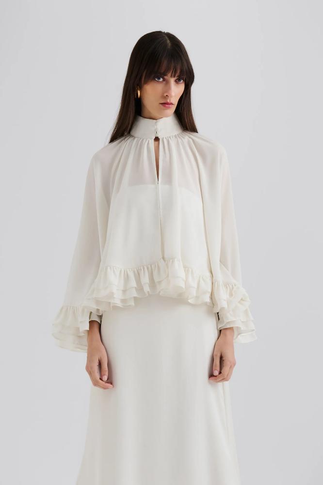 Veste, taille courte, blanche, parfaite pour un mariage civil.