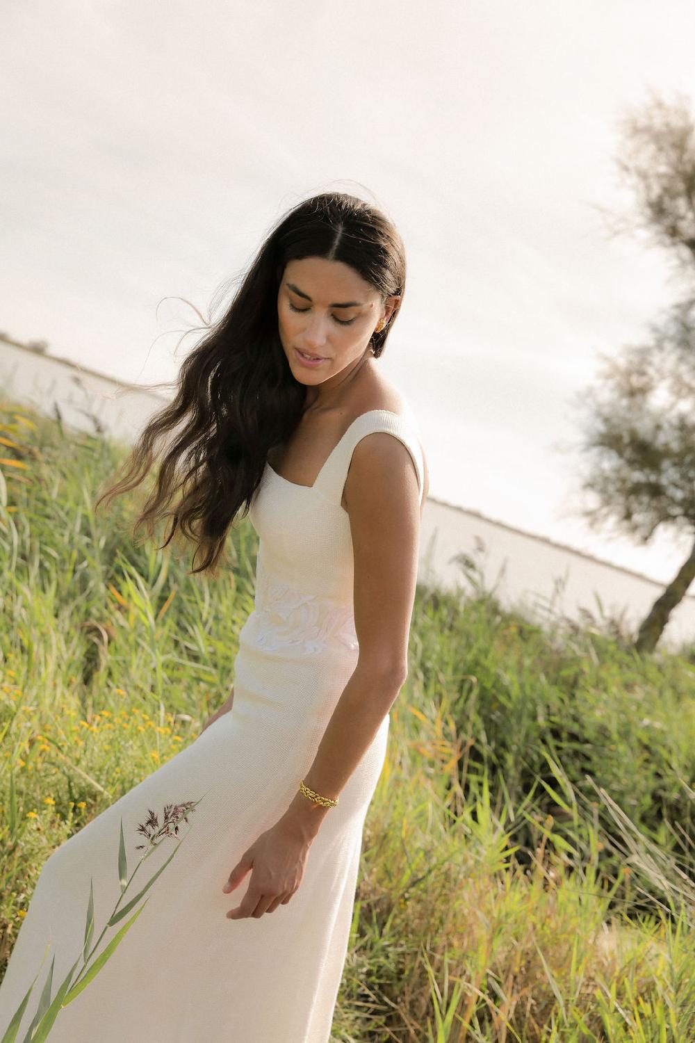 La robe est confectionnée à la main dans les ateliers de la créatrice.