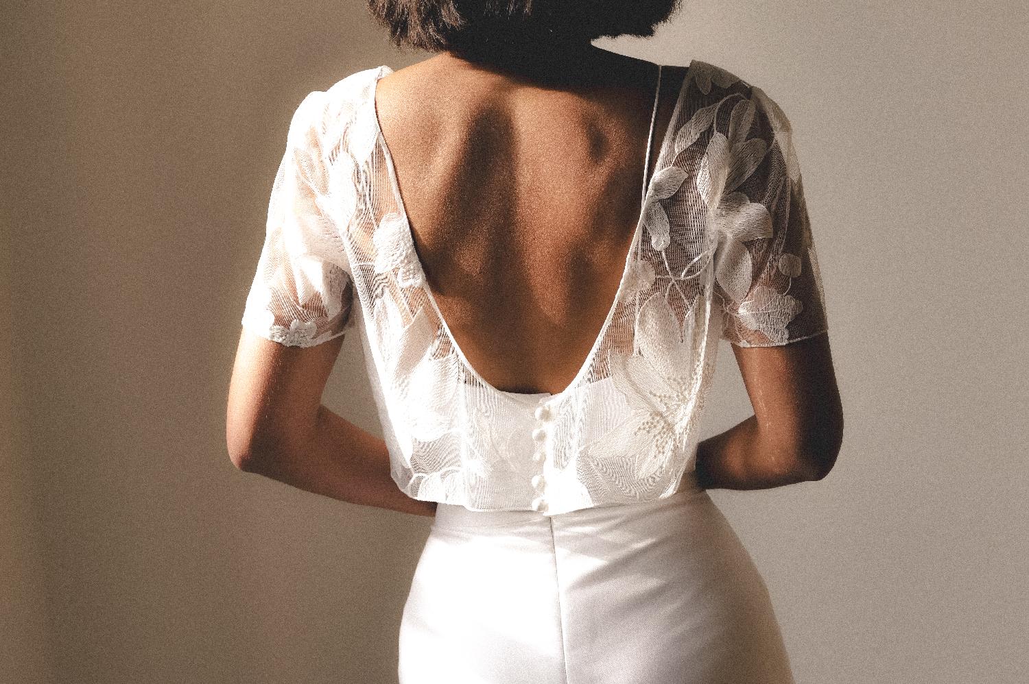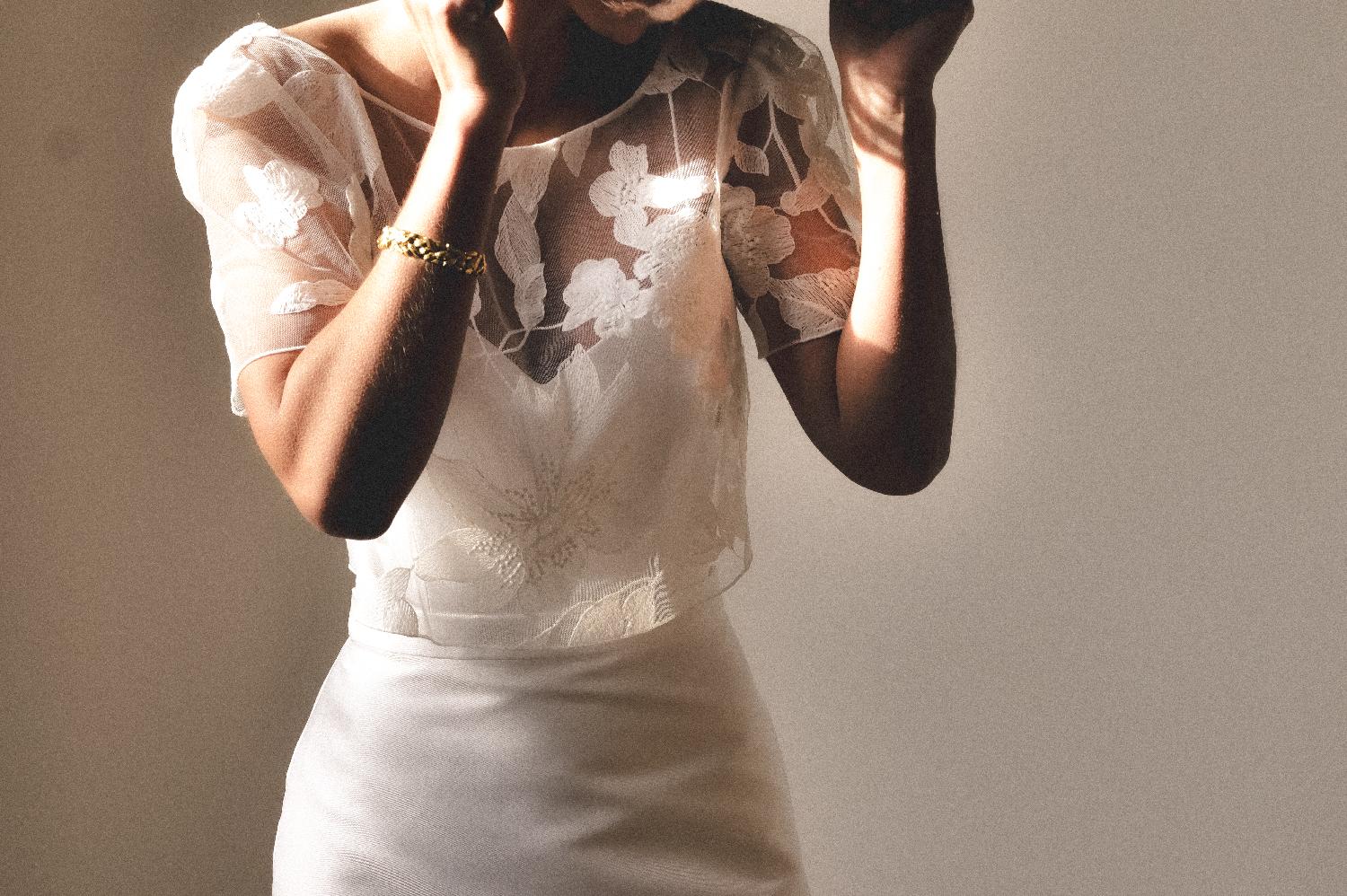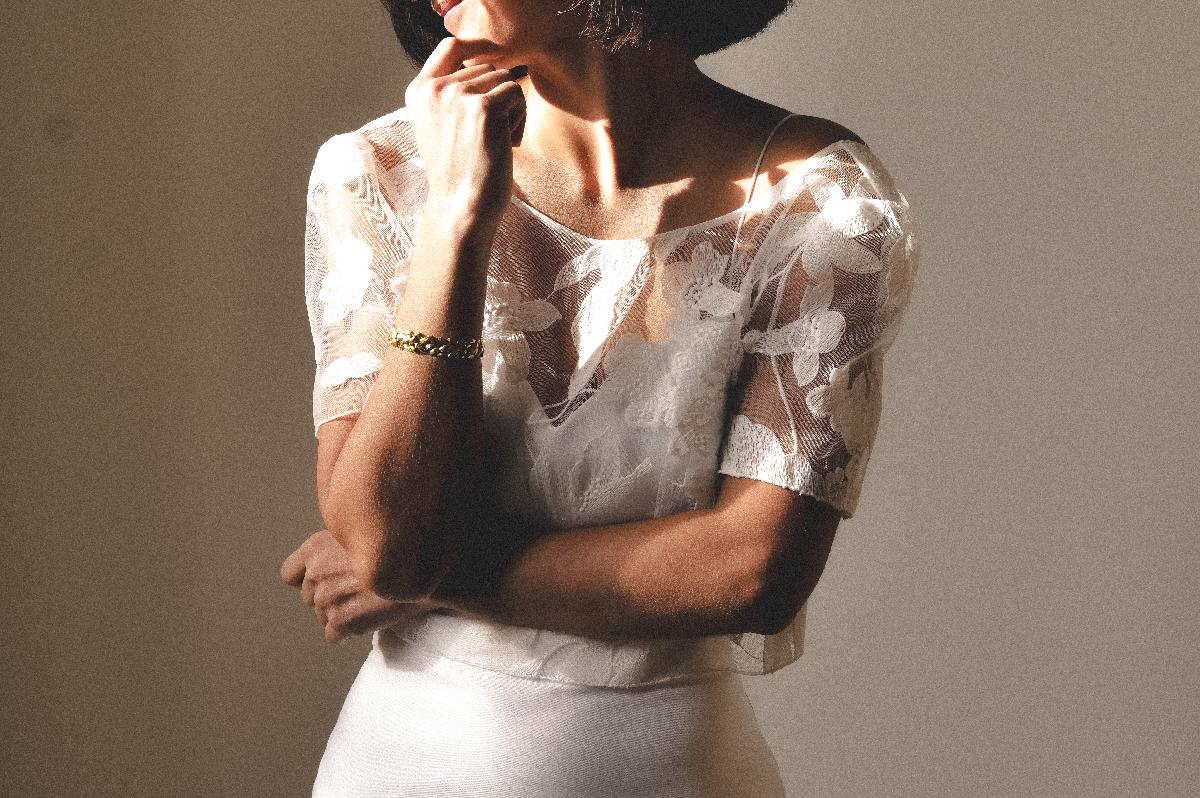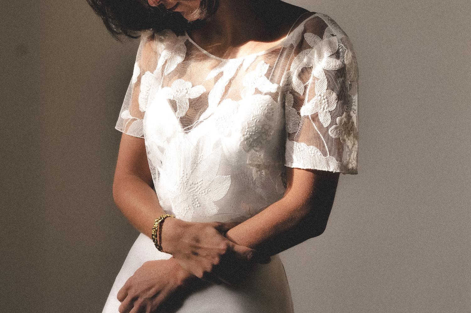 Top en dentelle brodée avec manches, parfait à mettre au-dessus du top Joseph.